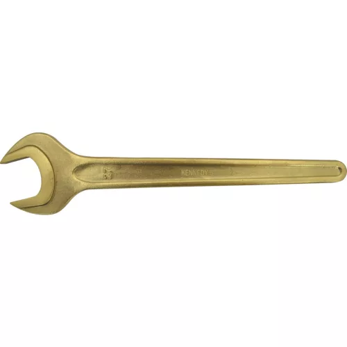 Alumínium-bronz szikramentes biztonsági szerszámok - Egyoldalas villáskulcsok. A szikramentes szerszámokat azért használják hogy kizárják a véletlen tüzek vagy robbanások keletkezésének esélyét a tűz-vagy robbanásveszélyes munkahelyeken Ezek a szerszámok a normál kivitelű szerszámokkal ellentétben nem képeznek szikrát kemény felülethez történő ütés következtében A szikramentes szerszámok használata alapvetően fontos sok ipari alkalmazásnál úgymint vegyipar olajipar festékszóró fülkékben végzett műveletek hajózással kapcsolatos ipari műveletek bányászat papírgyártás vagy bármely más olyan munkaterület ahol gyúlékony gőzök vagy tűzveszélyes maradványanyagok vannak jelen Az alu-bronz szikramentes biztonsági szerszámok keménysége 25 HRC szakítószilárdságuk 75-85 kp mm2 A szikramentes biztonsági szerszámok karbantartását nagy körültekintéssel kell végezni rendszeres időközönként szükséges tisztítani újraélezni hogy eltávolítsuk az esetlegesen rárakódott vastartalmú anyagokat vagy más szennyeződéseket melyek ronthatják a szerszámok használati értékét
