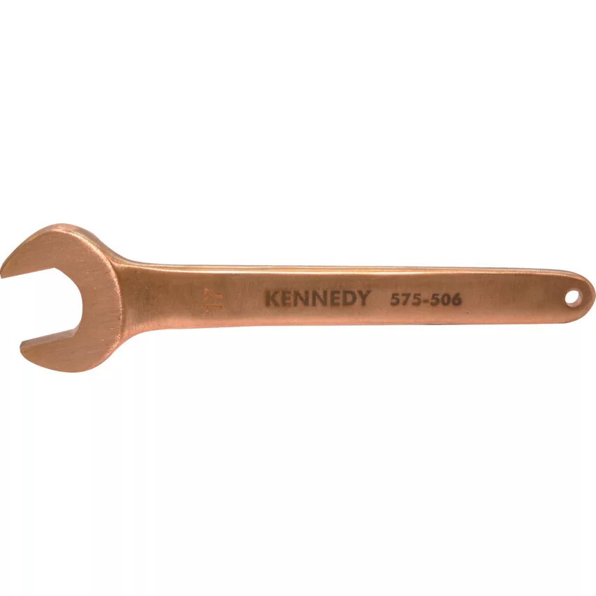 Alumínium-bronz szikramentes biztonsági szerszámok - Egyoldalas villáskulcsok. A szikramentes szerszámokat azért használják hogy kizárják a véletlen tüzek vagy robbanások keletkezésének esélyét a tűz-vagy robbanásveszélyes munkahelyeken Ezek a szerszámok a normál kivitelű szerszámokkal ellentétben nem képeznek szikrát kemény felülethez történő ütés következtében A szikramentes szerszámok használata alapvetően fontos sok ipari alkalmazásnál úgymint vegyipar olajipar festékszóró fülkékben végzett műveletek hajózással kapcsolatos ipari műveletek bányászat papírgyártás vagy bármely más olyan munkaterület ahol gyúlékony gőzök vagy tűzveszélyes maradványanyagok vannak jelen Az alu-bronz szikramentes biztonsági szerszámok keménysége 25 HRC szakítószilárdságuk 75-85 kp mm2 A szikramentes biztonsági szerszámok karbantartását nagy körültekintéssel kell végezni rendszeres időközönként szükséges tisztítani újraélezni hogy eltávolítsuk az esetlegesen rárakódott vastartalmú anyagokat vagy más szennyeződéseket melyek ronthatják a szerszámok használati értékét