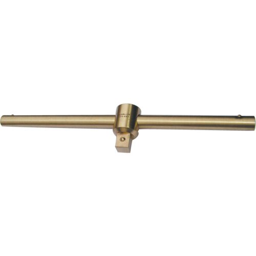Alumínium-bronz szikramentes biztonsági szerszámok - Csúszórudas T hajtószár. A szikramentes szerszámokat azért használják hogy kizárják a véletlen tüzek vagy robbanások keletkezésének esélyét a tűz-vagy robbanásveszélyes munkahelyeken Ezek a szerszámok a normál kivitelű szerszámokkal ellentétben nem képeznek szikrát kemény felülethez történő ütés következtében A szikramentes szerszámok használata alapvetően fontos sok ipari alkalmazásnál úgymint vegyipar olajipar festékszóró fülkékben végzett műveletek hajózással kapcsolatos ipari műveletek bányászat papírgyártás vagy bármely más olyan munkaterület ahol gyúlékony gőzök vagy tűzveszélyes maradványanyagok vannak jelen Az alu-bronz szikramentes biztonsági szerszámok keménysége 25 HRC szakítószilárdságuk 75-85 kp mm2 A szikramentes biztonsági szerszámok karbantartását nagy körültekintéssel kell végezni rendszeres időközönként szükséges tisztítani újraélezni hogy eltávolítsuk az esetlegesen rárakódott vastartalmú anyagokat vagy más szennyeződéseket melyek ronthatják a szerszámok használati értékét Csúszórudas T hajtószár A csúszórúd a rendelkezésre álló hely függvényében lehetőséget ad a megfelelő nyomaték beállítására A dugókulcsokat rugóterhelésű golyó rögzíti