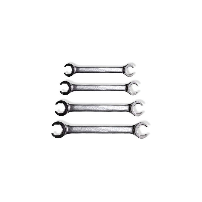 Professzionális ipari fékcsőkulcsok - Készletek. ASME B107 4 szerint gyártva Króm-vanádium acélból készült kulcsok tükörfény polírozással A tükörfény polírozás megakadályozza az olaj és piszok kulcshoz valóadását könnyű tisztítást biztosít és véd a rozsdásodás ellen Nagy nyomatékkal meghúzható vastag fejek Nyitott fej így csöveken át hozáférést biztosít a csavarfejekhez Hidraulikus csövekhez fékcsövekhez stb ajánlott Készletek 5 darabos metrikus 8 x 10 9 x 11 12 x 14 13 x 15 és 16 x 17mm 4 darabos AF-colos 5 16 x 3 8 3 8 x 7 16 1 2 x 9 16 és 5 8 x 11 16