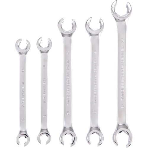 Professzionális ipari fékcsőkulcsok - Készletek. ASME B107 4 szerint gyártva Króm-vanádium acélból készült kulcsok tükörfény polírozással A tükörfény polírozás megakadályozza az olaj és piszok kulcshoz valóadását könnyű tisztítást biztosít és véd a rozsdásodás ellen Nagy nyomatékkal meghúzható vastag fejek Nyitott fej így csöveken át hozáférést biztosít a csavarfejekhez Hidraulikus csövekhez fékcsövekhez stb ajánlott Készletek 5 darabos metrikus 8 x 10 9 x 11 12 x 14 13 x 15 és 16 x 17mm 4 darabos AF-colos 5 16 x 3 8 3 8 x 7 16 1 2 x 9 16 és 5 8 x 11 16