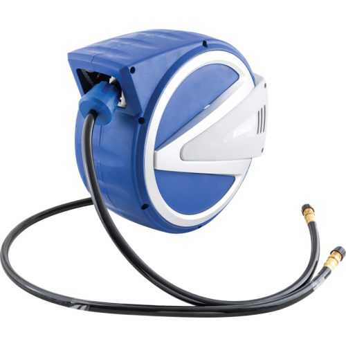 Poliuretánból készült, feltekerhet' víz- és leveg'töml' tekercs. -nrétegz dési rendszer mely megakadályozza az elakadást Munkanyomás 8 bar 120 PSI Vízhez használható 45 C-ig 180 elforgatható falra vagy plafonra szerelhet tartóval 1 4 BSPT Megfelel a BS EN ISO 12100 2010 szabványnak