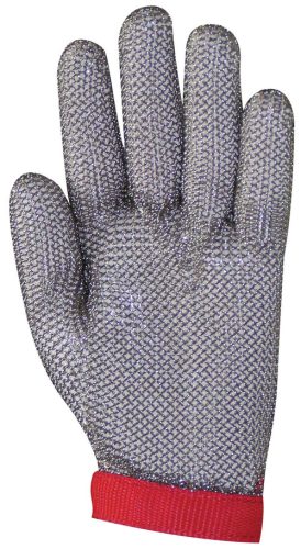 • ötujjas, fémgyűrűs védőkesztyű korrózióálló zárt acélgyűrűkből* védelmet biztosít a húsiparban alkalmazott kézi kések szúró, vágó mechanikai hatása ellen* 100 N húzószilárdság, ötös szövés* csattal állítható csuklóméret, méretnagyságot jelölő színek* a kézre való jobb illeszkedést segítendő választható * kesztyű feszítő gumi (GAN44900)* EN 14328:2005/07, EN 1082-1:1997/03 szabványoknak fel meg