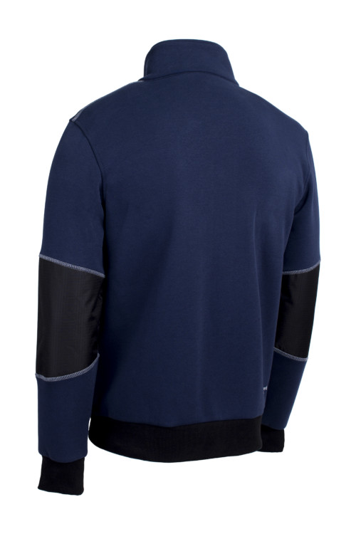* Bolyhozott dzsörzé – 70% pamut+30% PES - 300 g/m2 vastag * Bordázott elasztikus textil: 100% Poliészter* Ripstop betét (5 mm): PVC-vel borított 100% PES - 300 g/m2* Kopásálló Ripstop betétek a vállon* Álló gallér* Cipzáras záródás* 1 cipzáras softshell felső zseb* 2 függőleges oldalzseb* 2 belső zseb* Bordázott textil mandzsetta és aljrész* Kopásálló Ripstop megerősítés a könyökrészen