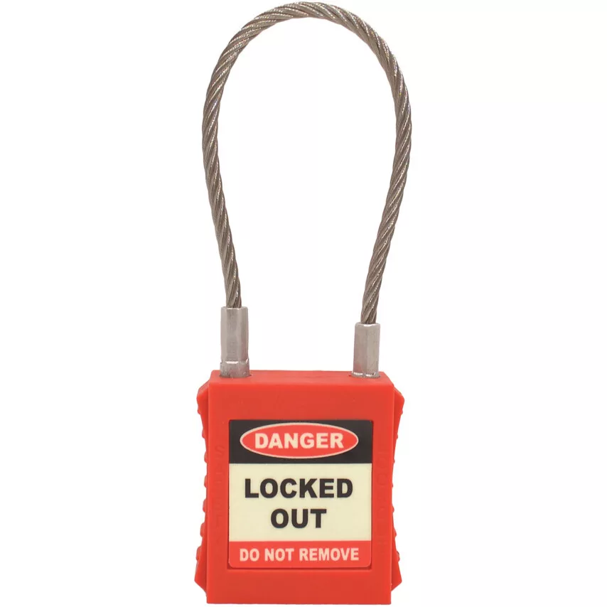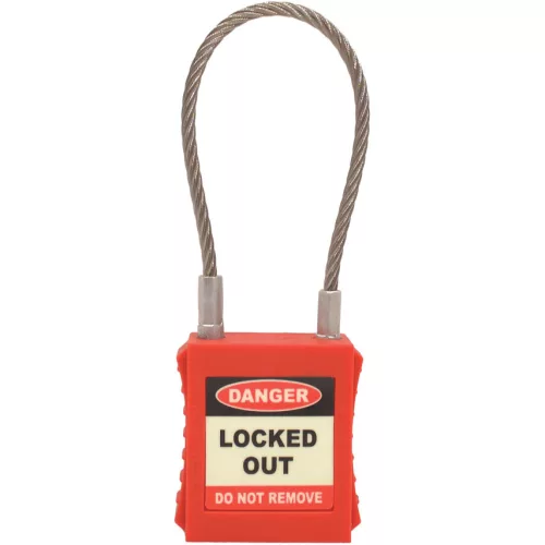 Acéllakatok. A 3 mm-es átmérőjű rugalmas kábeles kengyellel ez a lakat ideális kisebb megszakítós lezárásokhoz vagy amikor a normál lakat nem használható Szín piros Kengyelátmérő 3mm