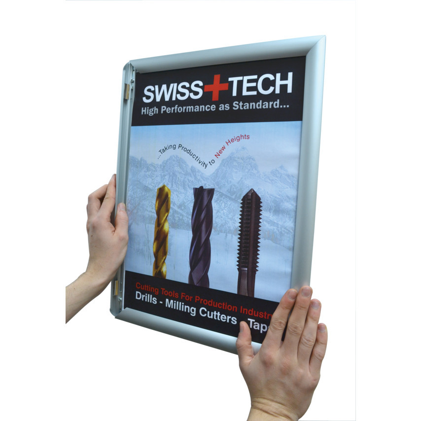 Falra szerelhető, pattintós képkeretek. Könnyű párnázott profilú keret a hátoldalon négy furattal a felfüggesztéshez és átlátszó rugalmas előlap mely megvédi a tartalmát Szín Fehér Anyag Alumínium Matt felület Álló vagy fekvő helyzetben is használható Beltéri és kültéri használatra egyaránt alkalmas