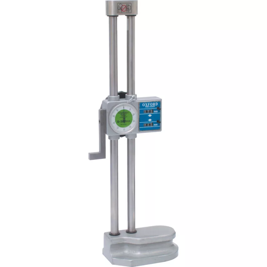 Kettős számlálóval rendelkező magasságmérők. Pontos kijelölésre és pontos mérések elvégzésére tervezték Leolvasás Hüvelyk 0 001 0 1 metrikus 0 01 mm 1 mm Stabil ikeroszlopokon elhelyezett mérőfej Kettős irányú negatív és pozitív olvasású mechanikus digitális számlálók Forgó tárcsafej A számlálók egymástól független beállítása nullára állítása bármely pozícióban Nagy adagolókerék Volframkarbid hegyű rajzolótű Tartós rozsdamentes acélból készült