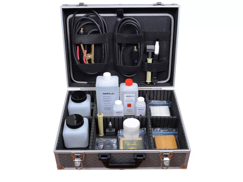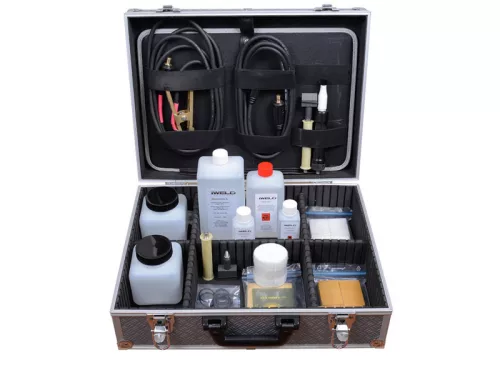 1x Alumínium koffer 1x Anód tisztításhoz Premiumline 60° 1x Fekete tisztító szénecset nyéllel Premiumline 1x Adapter Premiumline 1x Elektrolit A, 1 liter 1x Elektrolit C, 500 ml 1x Elektrolit ET, 100 ml 1x Konzerváló CrNi ápolásához 100 ml 1x Filclap tisztításhoz és feliratozáshoz, 20 db/csomag 1x Filclap polírozáshoz 20 db/csomag 1x Ersatz O-gyűrű 10 db/csomag 2x Műanyag tégely fedéllel, 500 ml-es 1x Csatlakozó kábel piros, 3 m, bajonettzárral és testcsipesszel 1x Csatlakozó kábel fekete, 3 m, bajonettzárral