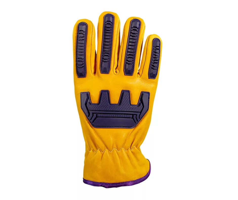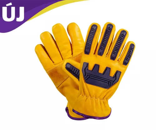 Panther sofőr kesztyű, tehénbőr, ütésvédőkkel lila/sárga 10-es