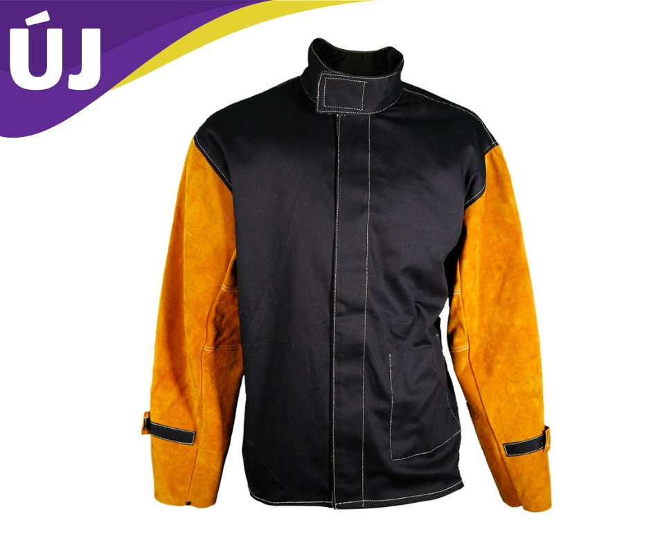 Parweld Panther BLACK PPE bőr ujjú hegesztőkabát méret: L
