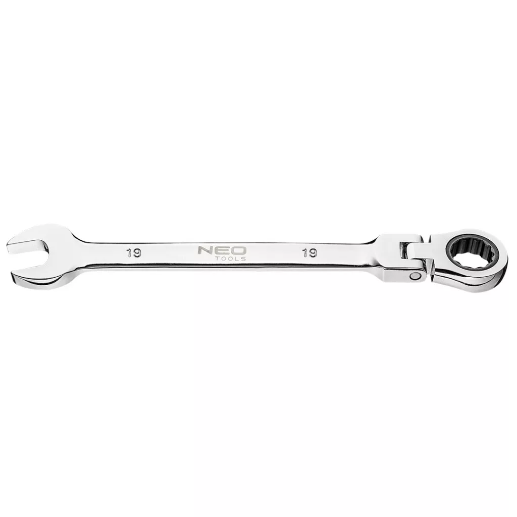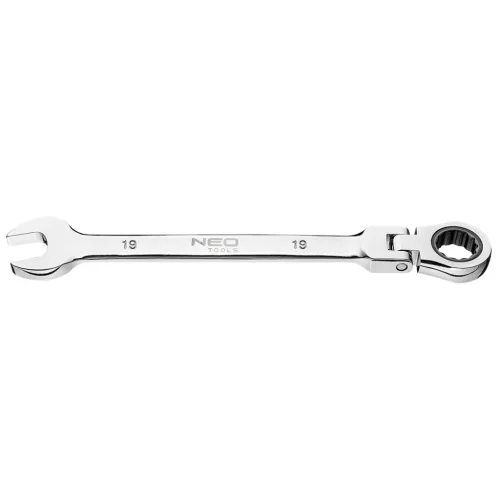 Racsnis, csuklós csillag-villáskulcs, 72-fogas kilincsmű, CrV acél NEO csuklós, racsnis csillag-villáskulcs A csillagkulcs 72-fogas kilincsműve gyors, pontos munkát tesz lehetővé. A csukló még funkcionálisabbá teszi. A kiváló minőségű króm-vanádium acél sokéves tartósságot biztosít. A szerszám minőségét bizonyítja a TÜV tanúsítvány és a gyártó által nyújtott 25 éves jótállás. A NEO márka a professzionális igényeket is kielégíti.
