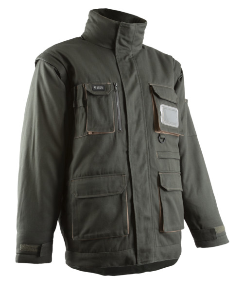 * Twill (sávoly szövés): 100% pamut 300 g/m2 + meleg bélés 220 g/m2 + bélés 80% poliészter / 20% pamut 105 g/m2