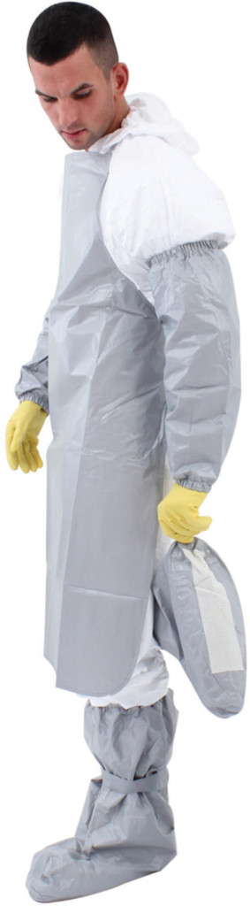 * TYCHEM 6000 F magasszárú csizmavédő * szürke poliészter filmréteges Tyvek(R) anyagból * kiváló védelem mechanikai ártalmak és fröccsenő vegyszerek ellen * magasszárú, 45 cm-es, csúszásgátló talpú, gumis és kötős