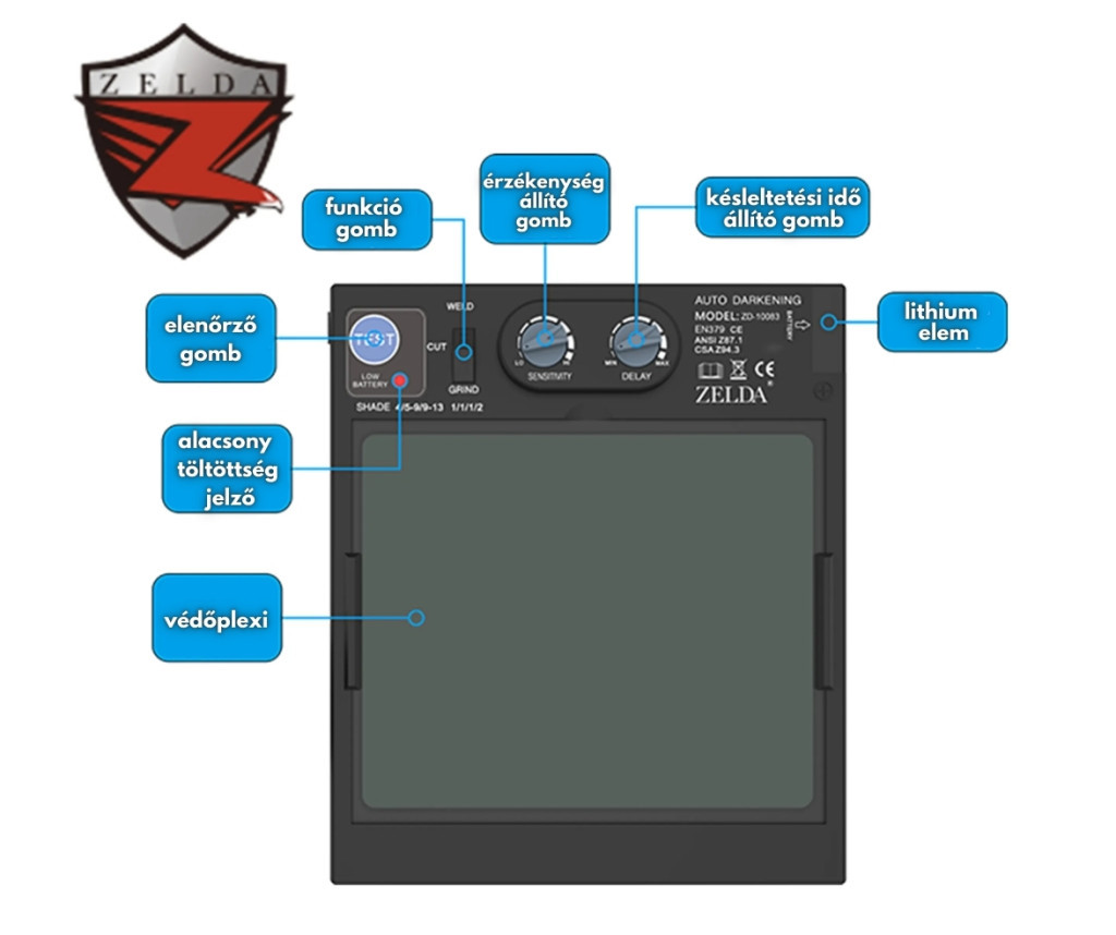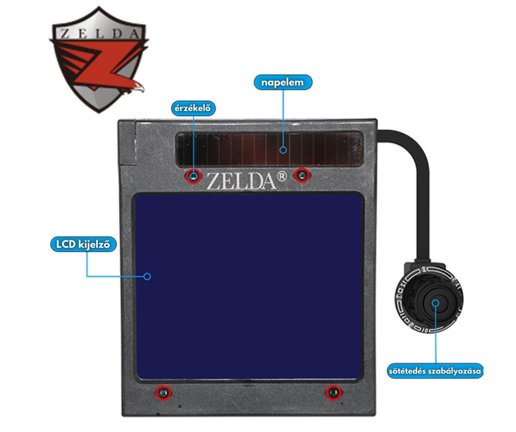 A ZELDA panoráma fejpajzs 4 érzékelővel rendelkezik, melyek egymástól függetlenül reagálnak a hegesztési ív indításakor, ami lehetővé teszi az LCD filter szinte azonnali sötétedését.