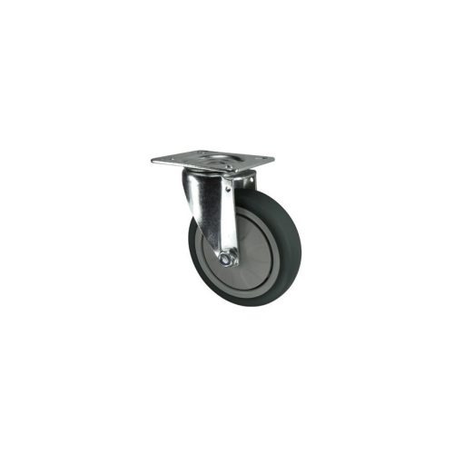 Kis- és közepes teljesítményű préseltacél görgők - hőre lágyuló műanyagból készült abronccsal szerelt kerék nejlonaggyal - golyós tengelycsapágy. Préseltacél görgők általános kis- és közepes teljesítményű ipari vagy szervezeti felhasználásra Szürke nyomot nem hagyó hőre lágyuló gumiból készült abronccsal szerelt görgők a manőverezést nagyban elősegítő golyóscsapággyal