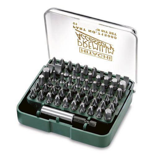 61 db-os készlet: Ph1, 3 x Ph2, 2 x Ph3, 5 x PZ 1, 10 x PZ 2, 5 x PZ 3, T 10, 2 x T 15, 2 x T 20, 2 x T 25, T 27, T 30, T 40, TX10, TX 15, TX 20, TX 25, TX 27, TX 30, H2, H2,5 H3, H4, H5, H5,5, H6, H7, H8, Es4, Es4,5, Es5, Es6, Es7, Es8, átalakító, mágneses bittartó