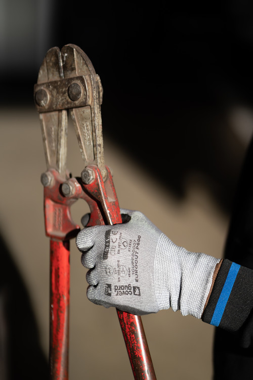 Szürke, HDPE-vel erősített kesztyűTenyerén fekete kopásálló PU mártásNitril megerősítés a mutató- és hüvelykujj közöttMinősítéssel OEKO-TEX® STANDARD 100, CQ 1301/1, IFTH