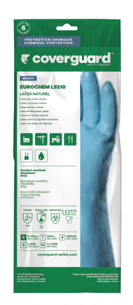 Pamut anyagra mártott természetes kék latex védőkesztyű1,3 mm vastag, 30 cm hosszú, sima felületűHosszú hullámos mandzsetta, teljes hossz: 30cm