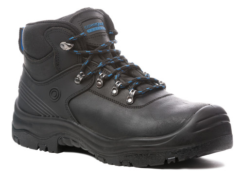 * a szabvány követelményeit meghaladó vízállóság(WR)és szellőző fekete minőségi színbőr felsőrész vízálló és lélegzőmembrános belsőbéléssel * könnyű, perforáción keresztül szellőző kompozit műanyag lábujjvédő(CK) és magas minőségű, flexibilis, fémmentes, átszúrás elleni talplemez * olajálló, antisztatikus, kétrétegű PU talp, ütődés elnyelő sarok emeltszintű SRC csúszásbiztossággal * megerősített TPU saroktámasz,plusz PU borítás az orr-részen