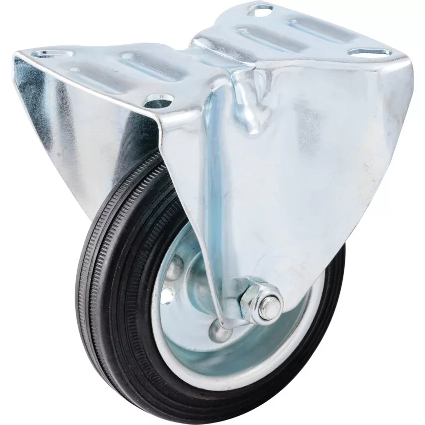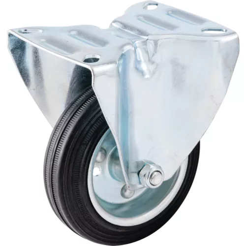 Közepes teljesítményű préseltacél görgők - gumiabroncsos kerékkel és préseltacél aggyal - golyóscsapágy. Préseltacél görgők általános közepes igénybevételű ipari felhasználásra Acélaggyal szerelt fekete ipari gumiabroncsos görgők tűcsapágyas kerekekkel