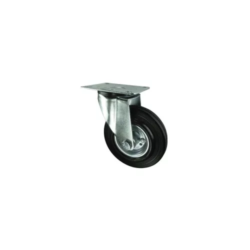Közepes teljesítményű préseltacél görgők - gumiabroncsos kerékkel és préseltacél aggyal - golyóscsapágy. Préseltacél görgők általános közepes igénybevételű ipari felhasználásra Acélaggyal szerelt fekete ipari gumiabroncsos görgők tűcsapágyas kerekekkel