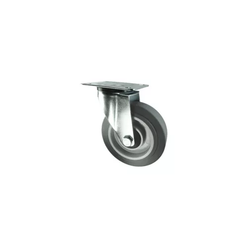 Közepes teherbírás Préseltacél görgők - folytatás. Szürke gumiabroncsos kerék műanyag aggyal - Golyóscsapágy Szürke elasztikus gumiból készült abronccsal szerelt görgők golyós tengelycsapággyal a berendezések zökkenőmentes mozgatásához