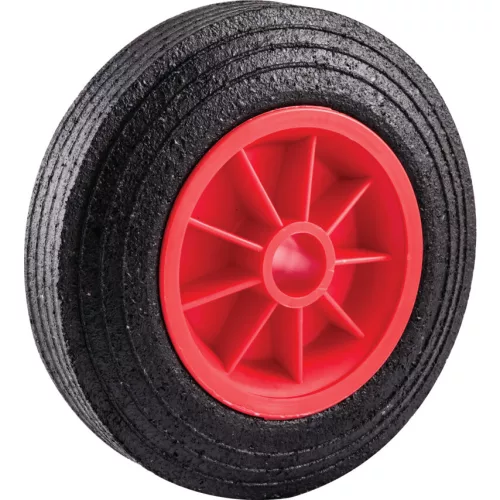 Tömör gumiabroncsos kerék, polipropilén felnin. A polipropilén felni tartós természetéből fakadóan hosszabb a termék élettartama A rugalmas felhasználás érdekében sikló vagy görgős csapággyal is elérhető A gumipárnás abroncsok gondoskodnak a padló védelméről és az általános kopásállóságról Több méretben és műszaki tulajdonsággal elérhető a szükségleteinek megfelelően Tipikus felhasználás Bármilyen környezetben való használatra ideális ahol bizonyos eszközöket mozgathatóvá kell alakítani például ipari intézményi vagy háztartási felhasználásra