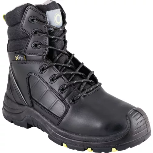 S3 munkavédelmi bakancsok lábközépvédelemmel. A vízálló bőr felsőrész és a hőálló járófelület növeli a csizma tartósságát Fémmentes kompozit orrbetéttel és orrvédővel mely növeli a termék élettartamát A Poron XRD a lábfej felső részén nyújt becsapódás elleni védelmet így megóvja a lábközépcsontot Oldalsó cipzár a könnyű fel- és levételhez A klasszikus fekete felület sok viselethez illik Számos méretben elérhető EN ISO 20345 2011 EVA comfort talpbetét Tartalmaz egy pár tartalék fűzőt
