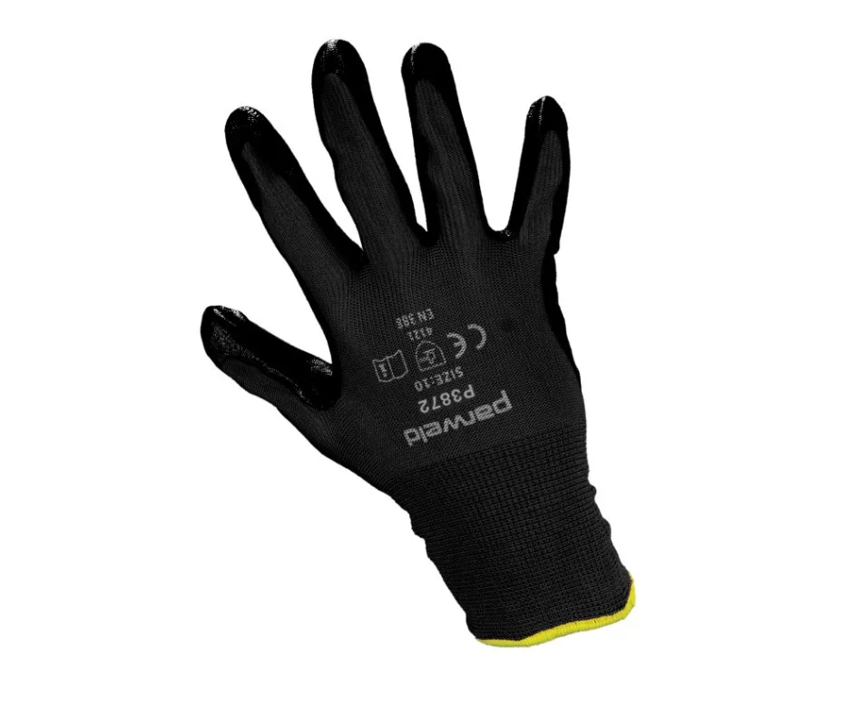 Minden fekete, nitril bevonatú 13G poliészter markolatkesztyű 8-as, 9-es, 10-es vagy 11-es méretben kapható.